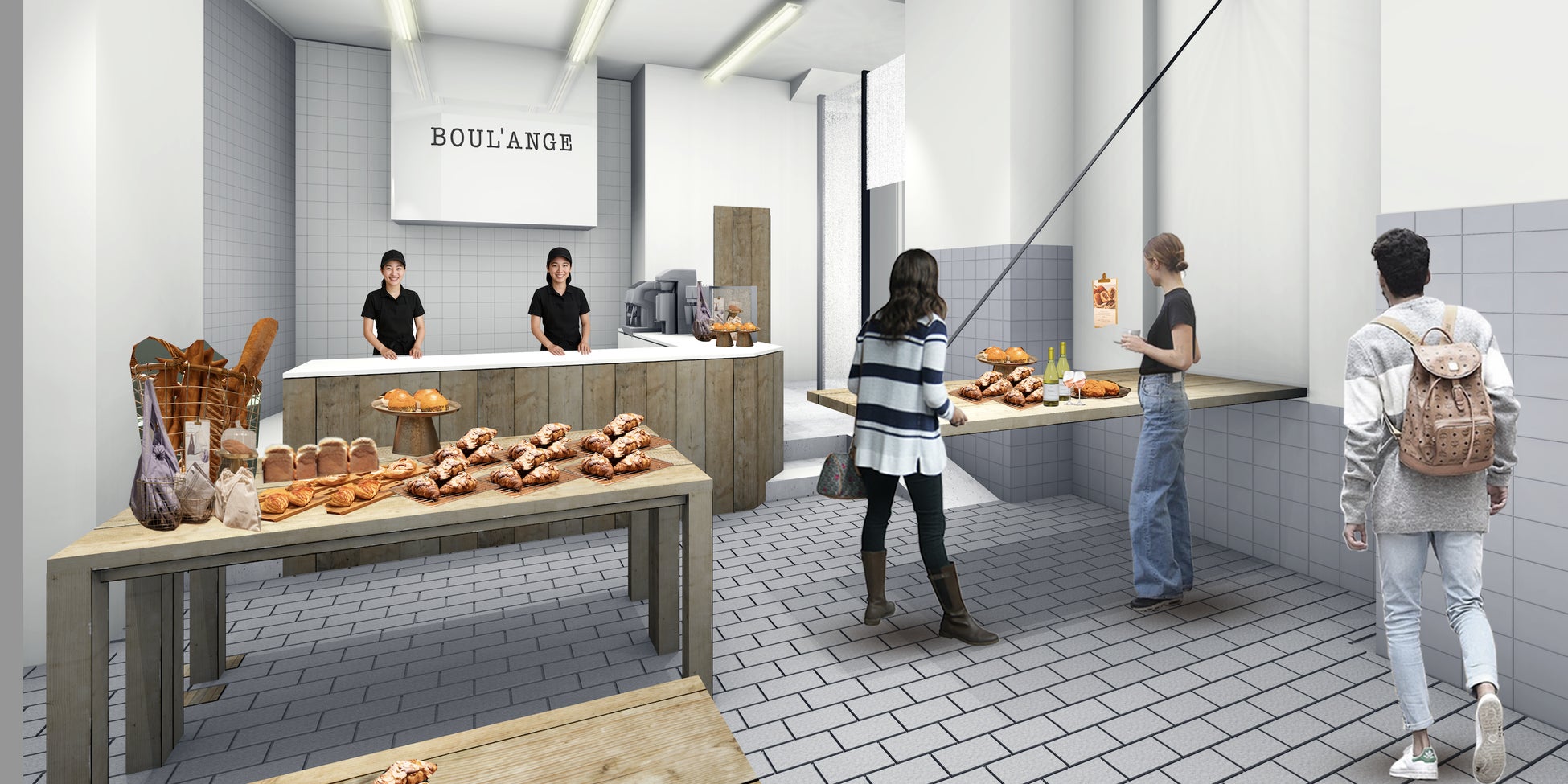 シグニチャーであるクロワッサンをはじめ、BOUL’ANGEのパンをモチーフにデザインしたイラストを展開します。スタッフが着用するユニフォームやサコッシュのほか、店内の随所にあしらわれており、空間全体でお楽しみいただける仕掛けになっています。おしゃれなデザインから思わずくすっと笑える遊び心のあるイラストまで、大阪梅田店ならではのアートをお楽しみいただけます。