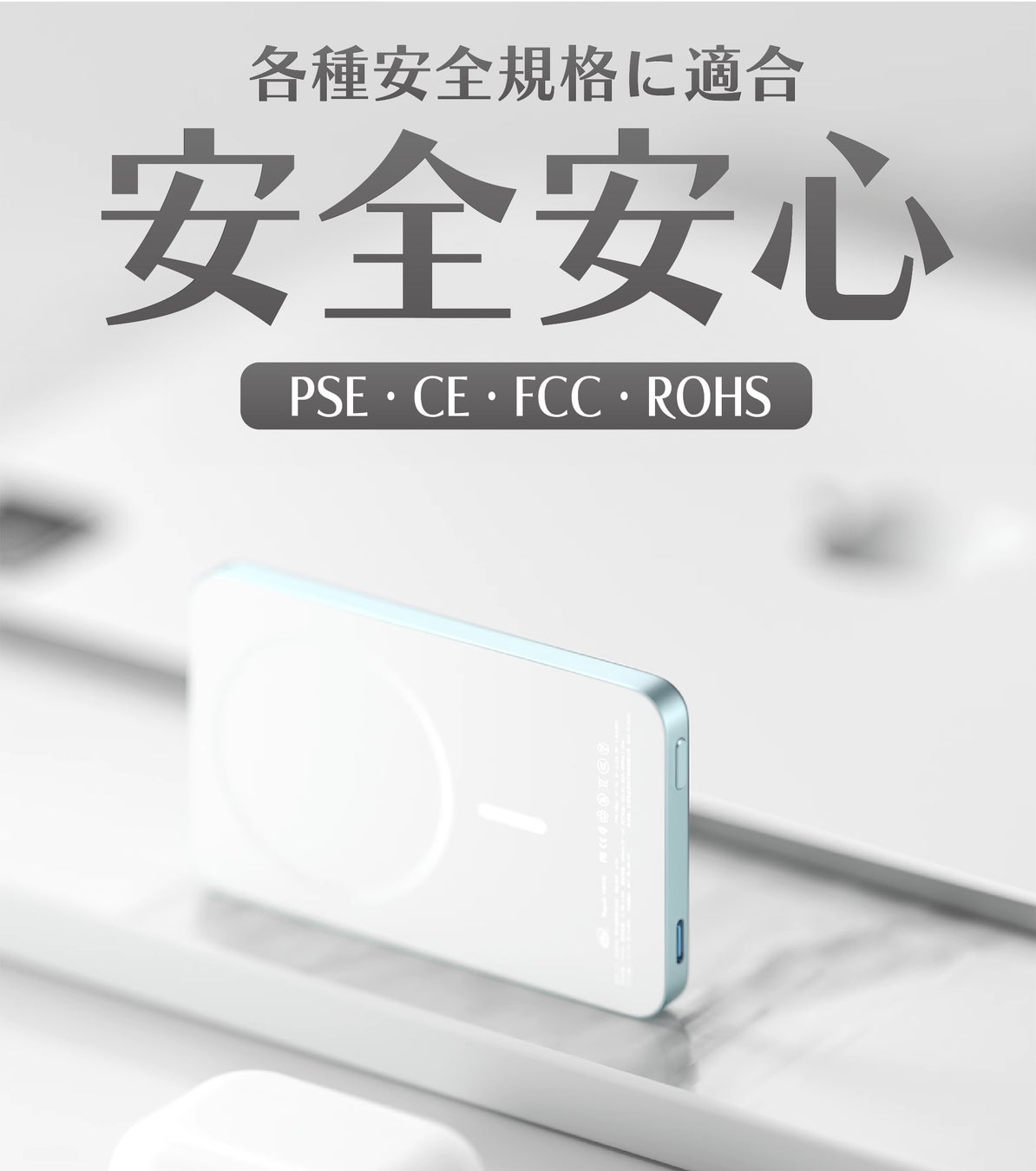 日本のPSE規格や、CE、FCCなどの国際的な安全基準にも適合。