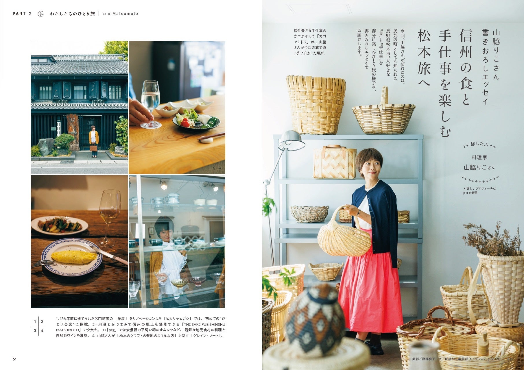 山脇りこさんの書き下ろしエッセイでお届けするのは「信州の食と手仕事を楽しむ松本旅」。旅の臨場感あふれる、いきいきとしたエッセイは必読です。