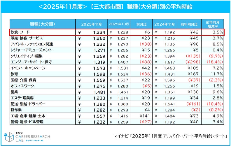 「2025年11月度アルバイト・パート平均時給レポート」を発表
