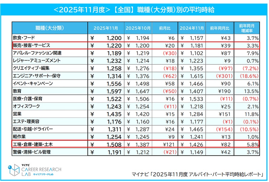 『2025年11月度 アルバイト・パート平均時給レポート』