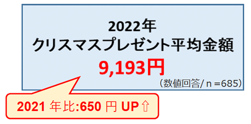 ■高校生が2022年に実際にもらったプレゼントの平均金額は「9,193円」、2021年より650円上昇