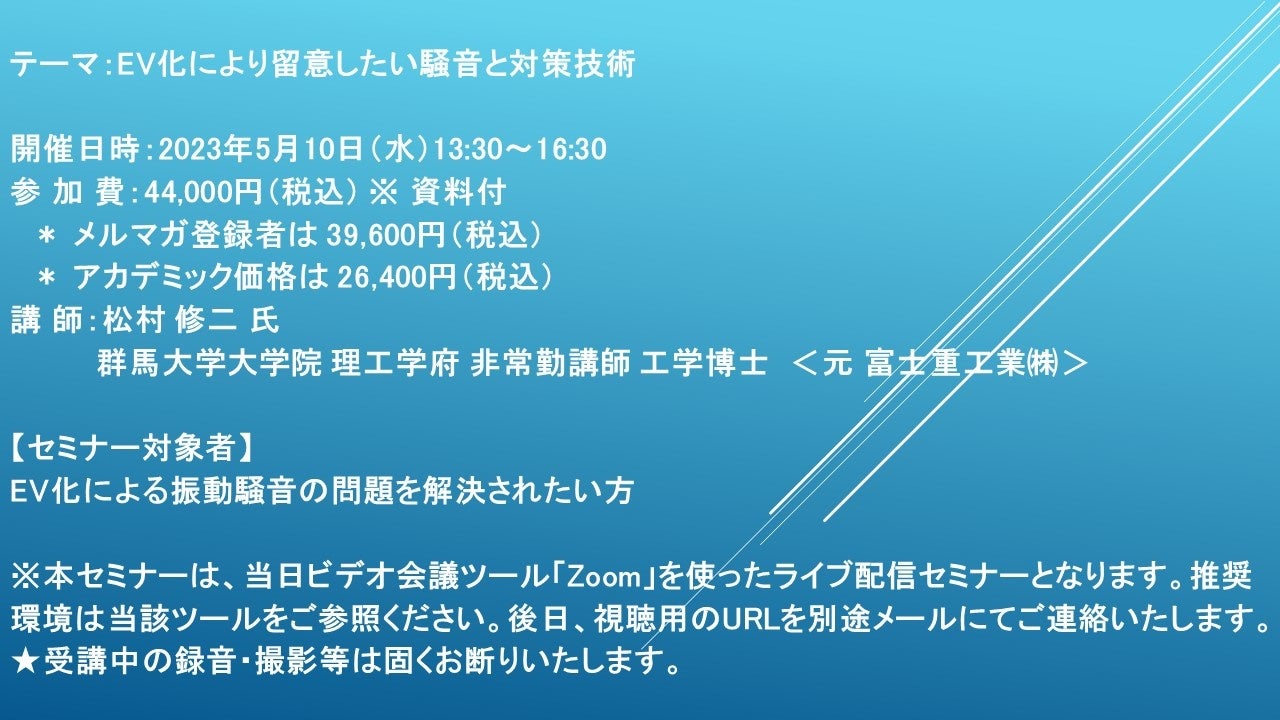 【ライブ配信セミナー】EV化により留意したい騒音と対策技術 5月10日(水)開催 主催:(株)シーエムシー・リサーチ