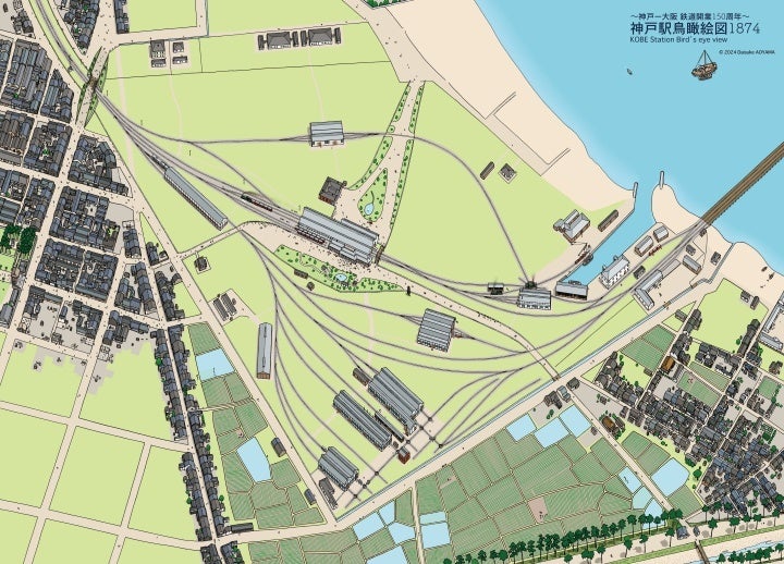 神戸生まれの鳥瞰図絵師 青山大介さんが、鳥の目線で描いた「初代神戸駅」など展示します。