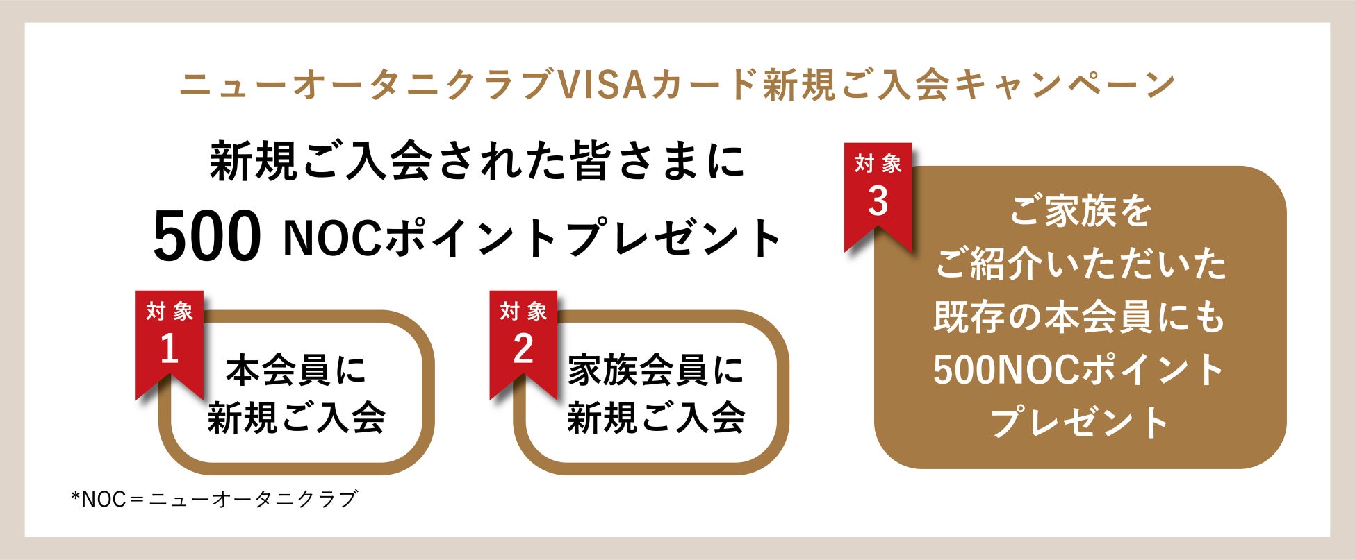 (対象期間内にニューオータニクラブVISAクラシックカードまたはゴールドカードへの新規ご入会、または、本会員の皆さまのご紹介で新たに家族会員の追加が条件となります)。