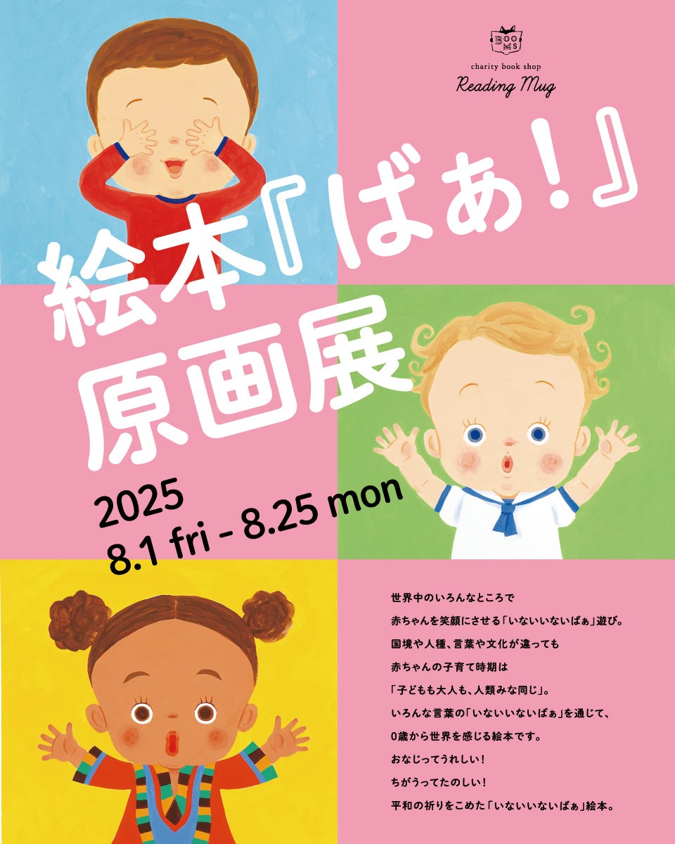 国境や人種、言葉や文化が違っても子育て時期は「子どもも大人も、人類みな同じ」。0歳から世界を感じる絵本『ばぁ!』。名古屋市のセレクト本屋「Reading Mug(リーディングマグ)」で原画展開催決定!