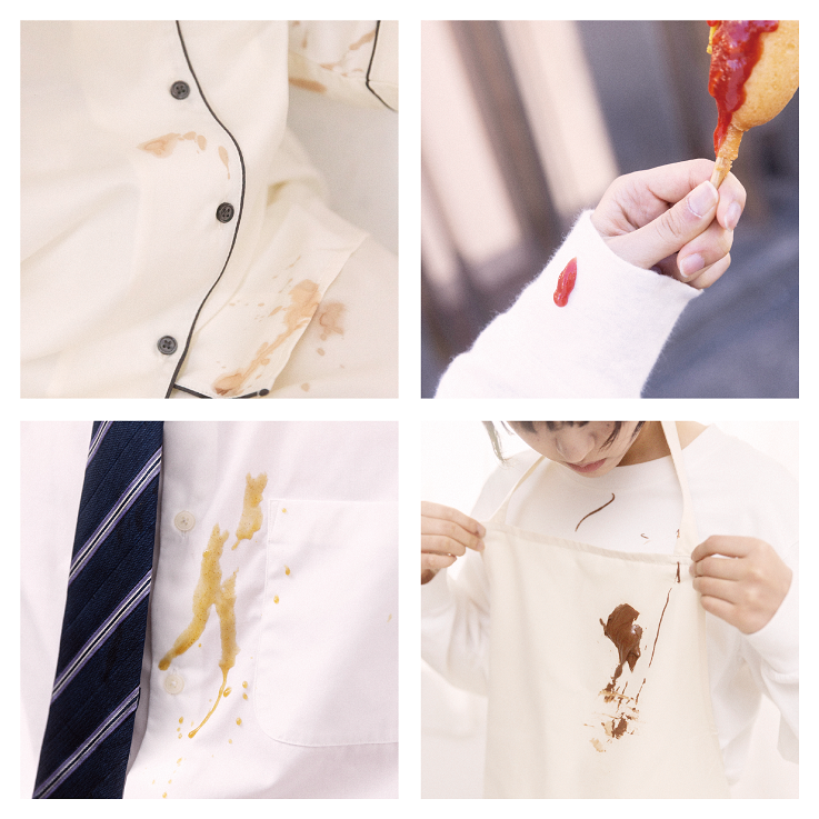 うっかりこぼれた、飲食物。たまたまはねた、土や泥。とっさにこすれた、化粧品。