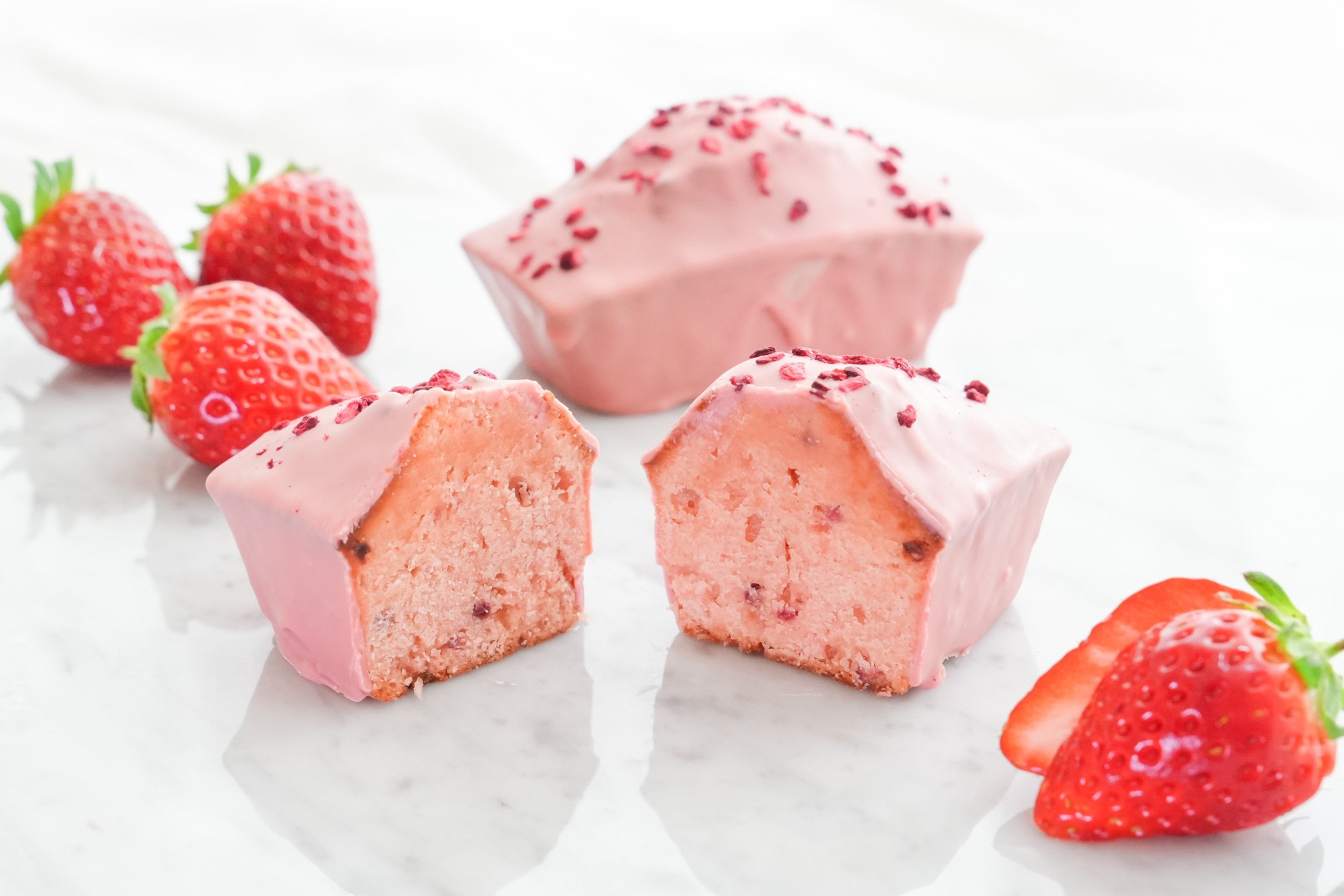 福岡県産あまおうのぺーストとフランボワーズピューレを使用してしっとりと焼き上げた、甘酸っぱい味わいの期間限定ケイク。いちごのチョコレートでコーティングして、フランボワーズをトッピング。販売期間:3月1日(日)~31日(火)