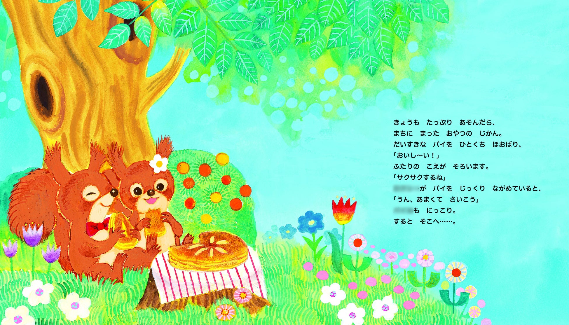 「パイの実」のパッケージでもおなじみのふたりのリスさんをモデルとした絵本で、「パイの実」の夢とやさしさを感じられるお話です。また、発売以来ずっと名前が明かされてこなかったふたりのリスさんの名前が、初めて明らかになります!