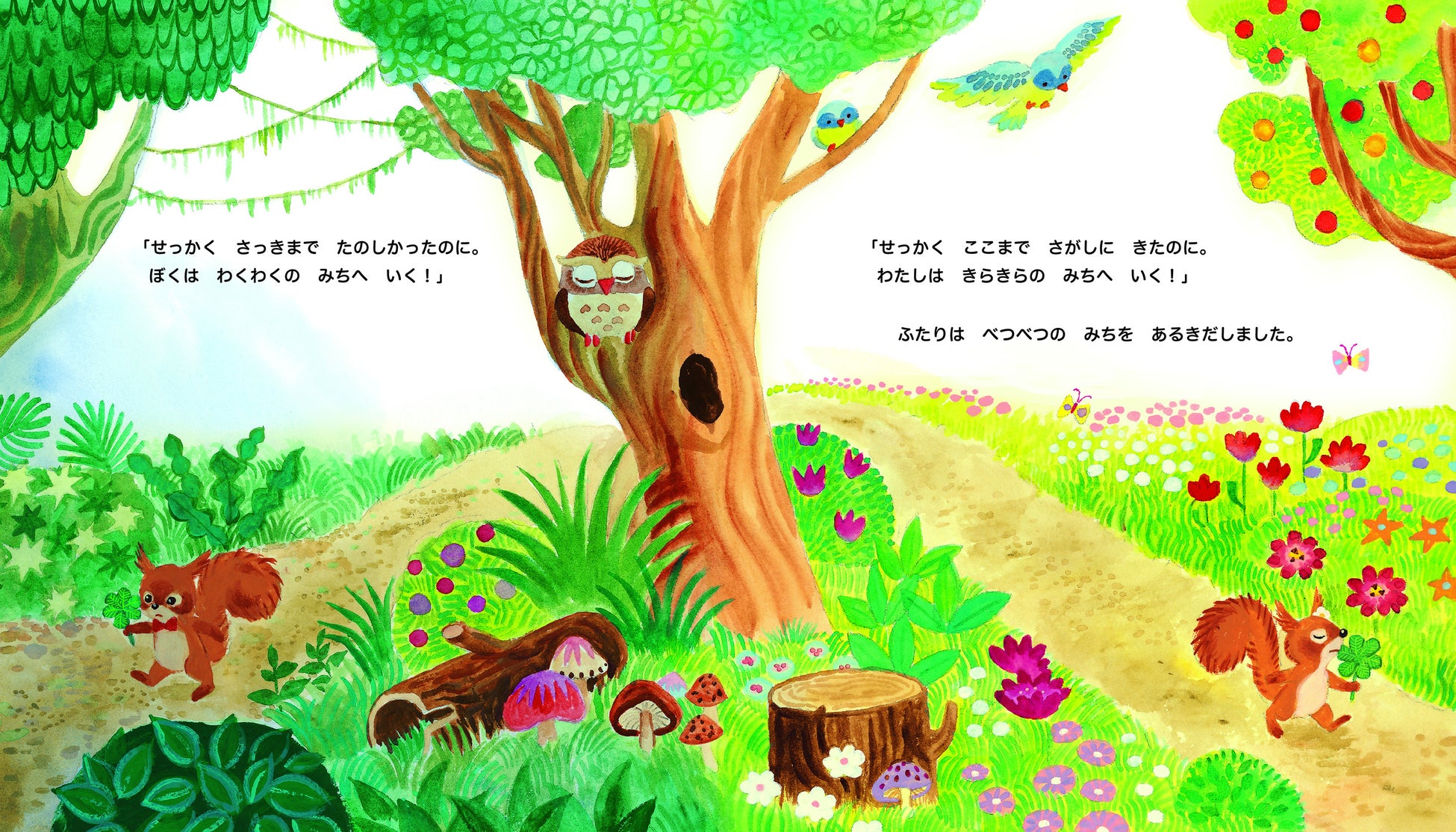 また、WEB絵本だけの仕掛けとして、ふたりのリスさんが絵本の中で動く姿を、ぜひお楽しみください♪