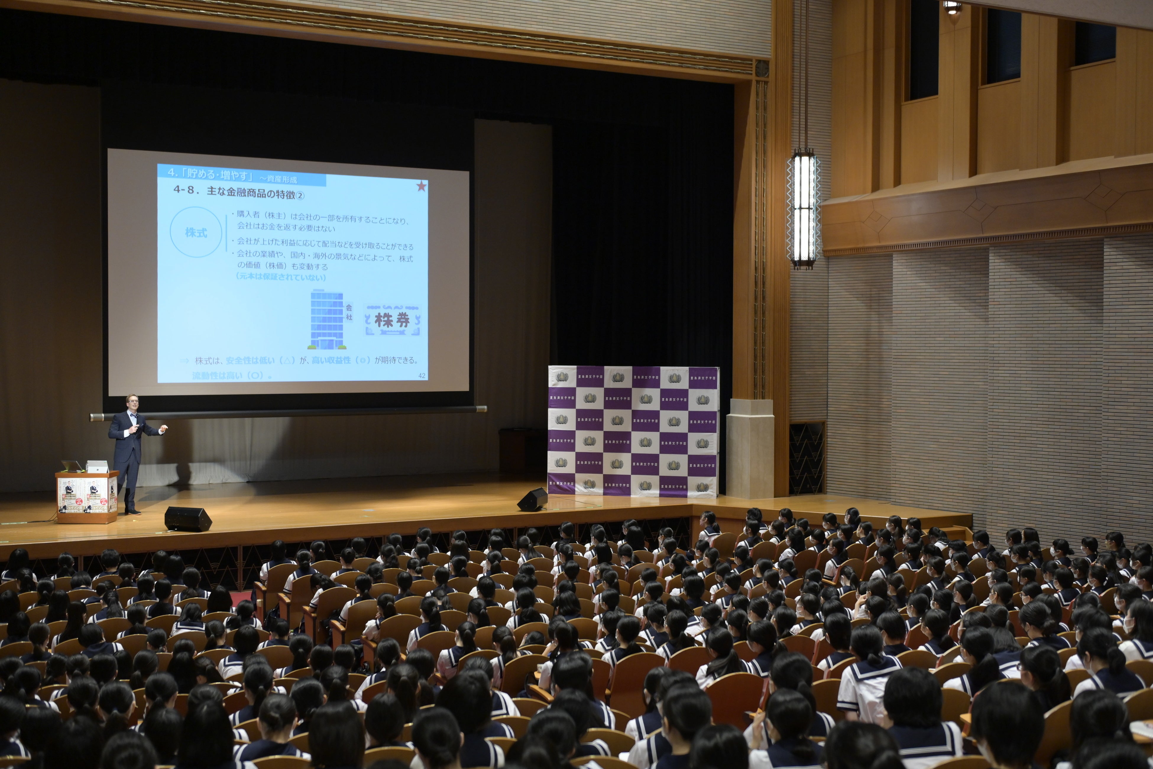 「お金のことは一番人生に影響することではないかと思う。」と話し、「誰もが金融リテラシーを持ち、ライフデザインすることが必要な時代になった。学生のうちから基礎知識をしっかり学んでほしい。」と学生にエールを送りました。