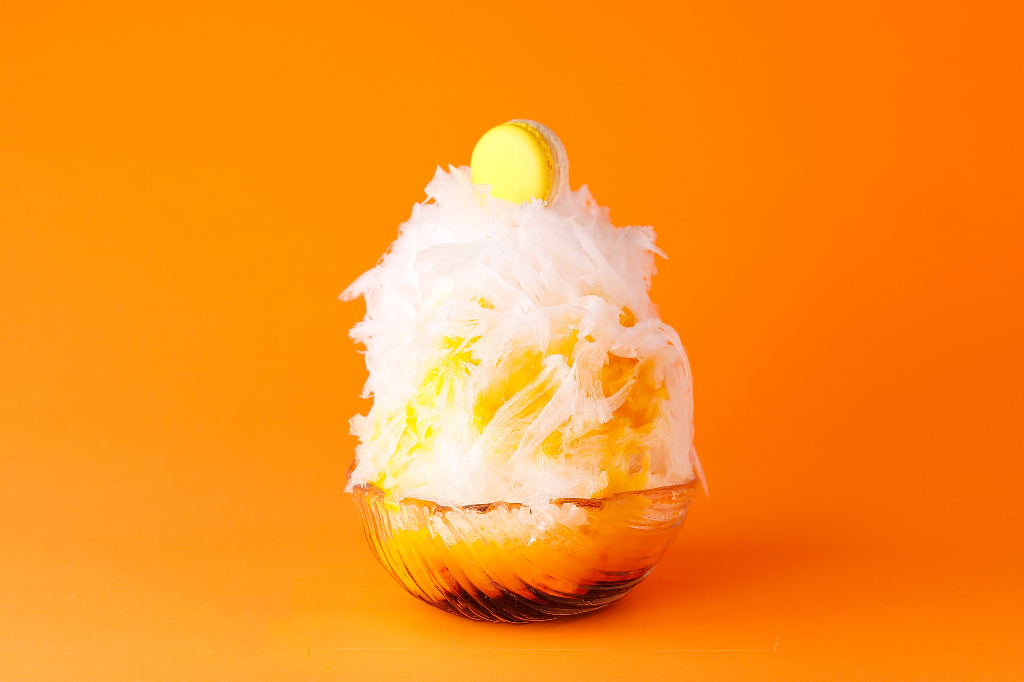 初夏に旬を迎えるフルーツの代表格としても知られる「マンゴー」をかき氷で存分に愉しめます。果肉入りのマンゴーゼリーと黒蜜ゼリーを中に忍ばせ、仕上げにマンゴー葛ソースをたっぷりかけた、マンゴー好きにはたまらない一品。見た目も鮮やかなイエローで、夏を感じていただきつつ涼を得ることができる自慢のフレーバーです。