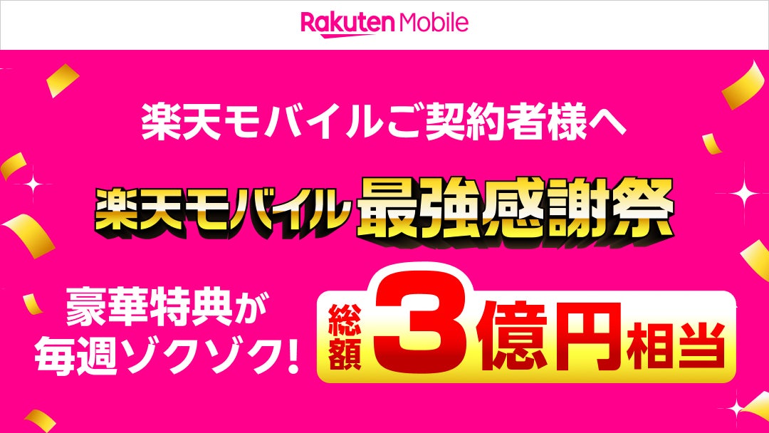 楽天モバイル、総額3億円相当の特典を進呈する「楽天モバイル 最強感謝祭」を本日12月2日(月)より実施