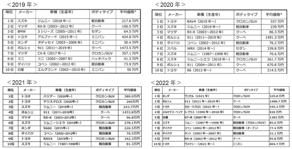・対象データ:国内最大級の中古車情報メディア『カーセンサーnet』