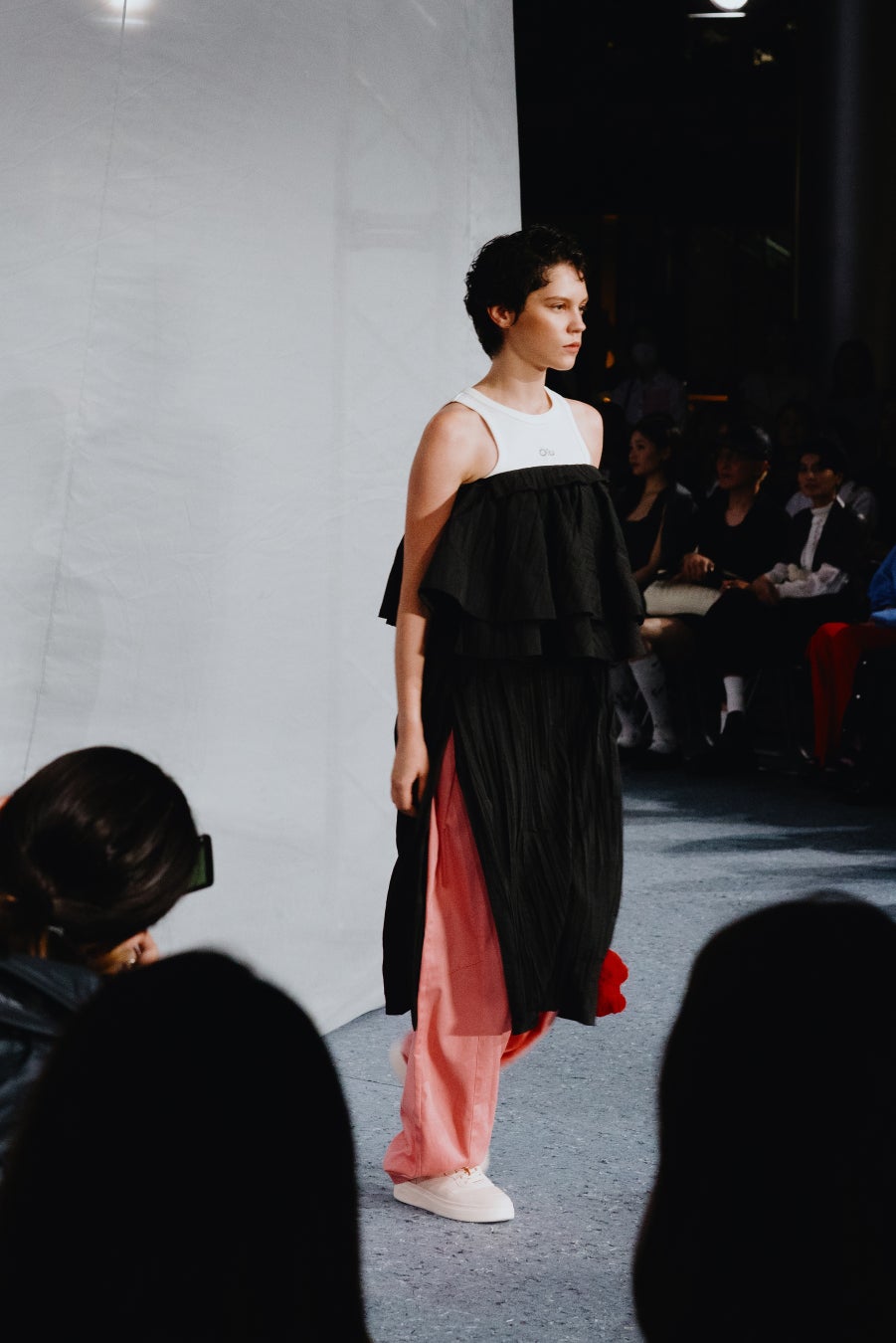 そのほか、「O0u」で起用している長寿命機能素材“eversmart”を製造している「丸井織物」の生地を洋服に落とし込むなど、多くの企業にご協力いただき、「O0u」が掲げる、サステナブルなコミュニティづくりが形作られたショーとなりました。