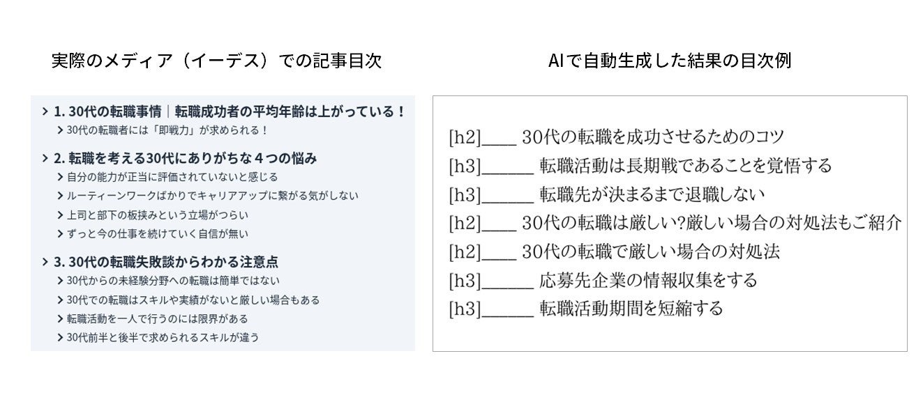 株式会社エイチームのグループ会社である株式会社エイチームライフデザイン(本社:愛知県名古屋市、代表取締役:間瀬文雄)は、静岡大学の狩野芳伸准教授をアドバイザーとして迎え、「自然言語処理」(NLP:Natural Language Processing)のコンテンツ制作や自動化に関する共同研究を2022年2月に発表し、研究開発を進めておりました(※1)。この度、研究開発内容である記事生成モデルに関する共著論文「Automatic Generation of Web Article Headings Text with Heading Hierarchy(見出し階層性を考慮したウェブ記事目次テキストの自動生成)」を、2023年6月に開催される「2023年度 人工知能学会全国大会(第37回)」で成果発表いたします。