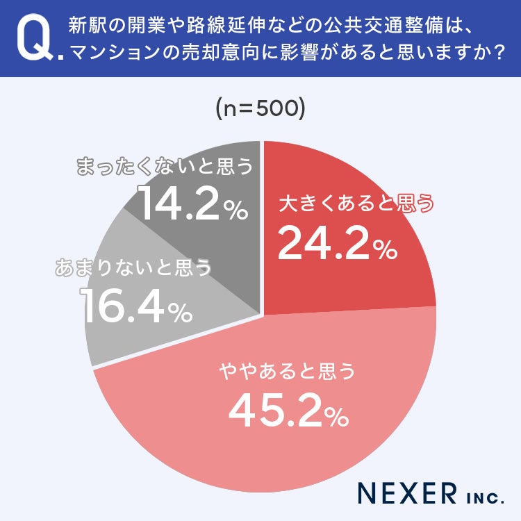 続いて、新駅の開業や路線延伸などの公共交通整備が、マンションの売却意向に影響すると思うかを聞いてみました。