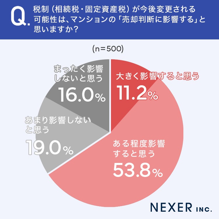 続いて、税制(相続税・固定資産税)の変更がマンションの売却判断に影響すると思うかを聞いてみました。