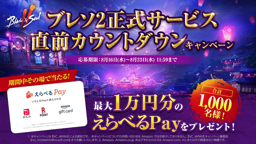 株式会社NCSOFT(韓国 板橋(パンギョ)、代表:金 澤辰(キム テクジン)、以下NC)は、「ブレイドアンドソウル」シリーズ最新作、ソウルアクションRPG『ブレイドアンドソウル2(Blade&Soul2)』に関して、8月16日(水)から事前ダウンロード&事前キャラクター作成が開始されたことや、「ブレイドアンドソウル2」公式イラストコンテストが募集を開始したこと、VTuberポー・ファランの第4回放送が決定したこと、および各種キャンペーンが決定したことをお知らせします。