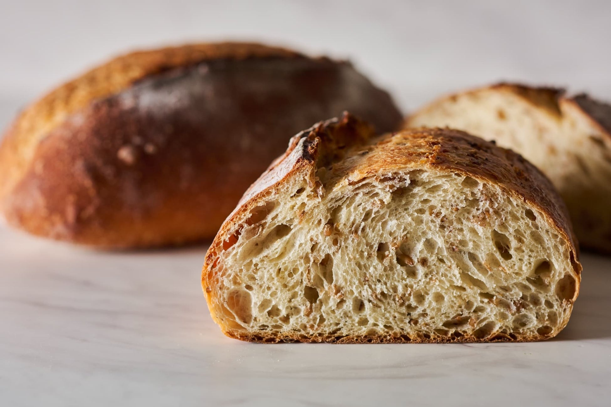新宿の工房で毎朝焼き上げるサワードゥは、長時間発酵が生み出す、豊かな香りと奥行きのある味わい。外は香ばしく、軽やかに弾けるクラスト。