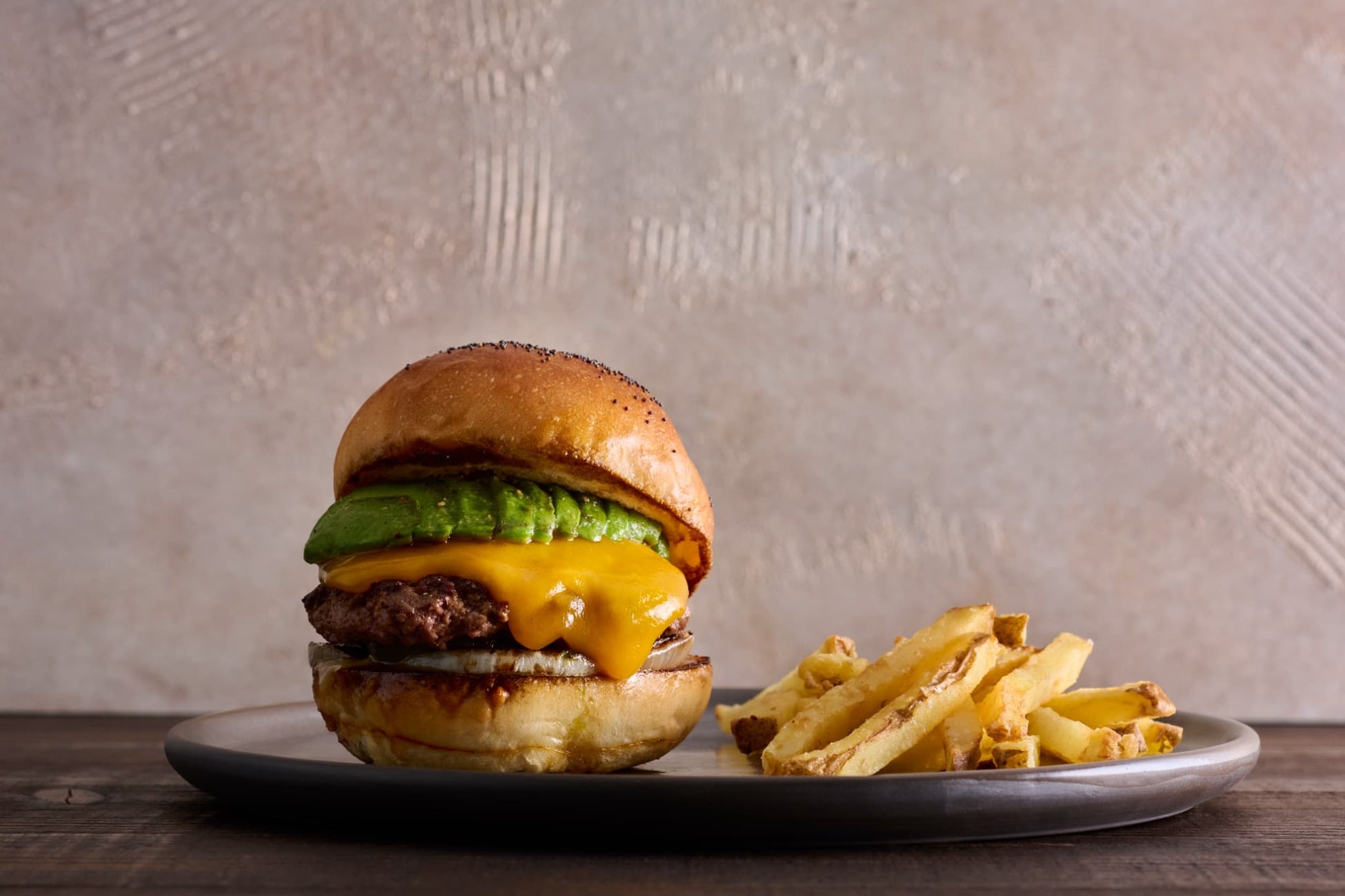 J.S. BURGERS CAFEで長年愛されてきた人気バーガーを、さらに磨き上げた看板の一品。アンガス牛100%のパティを薪火でじっくりと焼き上げ、香ばしさとジューシーさを極めました。