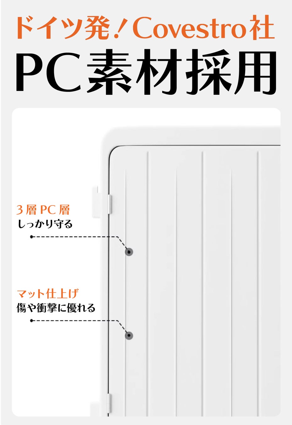 また、スーツケースの素材に3層のPCを贅沢に使用。