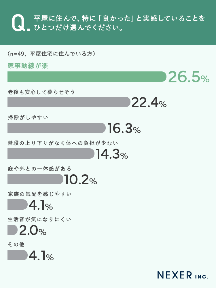 ■26.5%が、平屋に住んで「家事動線が楽」と実感