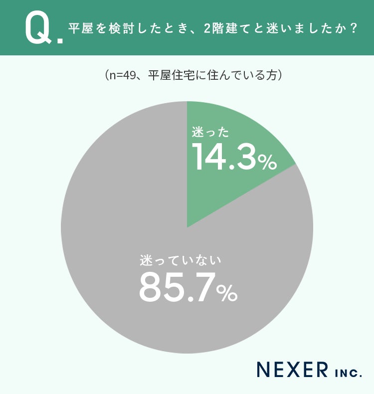 ■85.7%が、平屋を検討したとき「2階建てと迷っていない」と回答