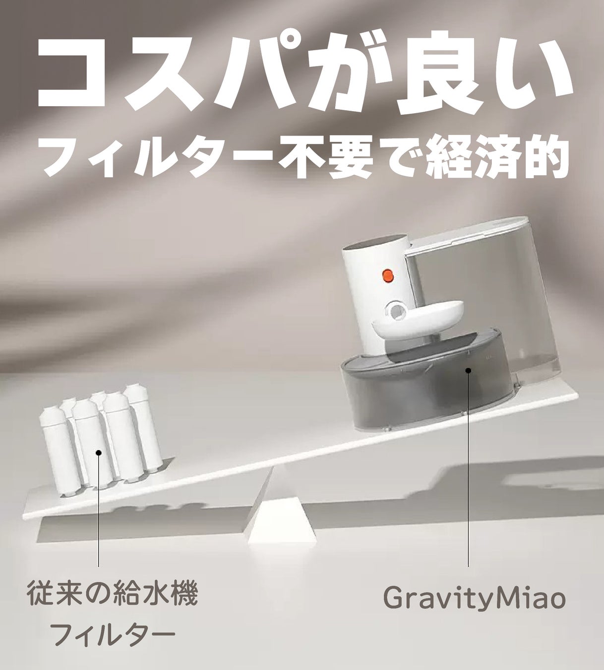 GravityMiaoはフィルターを使った循環式じゃないので、定期的なフィルター交換が不要。