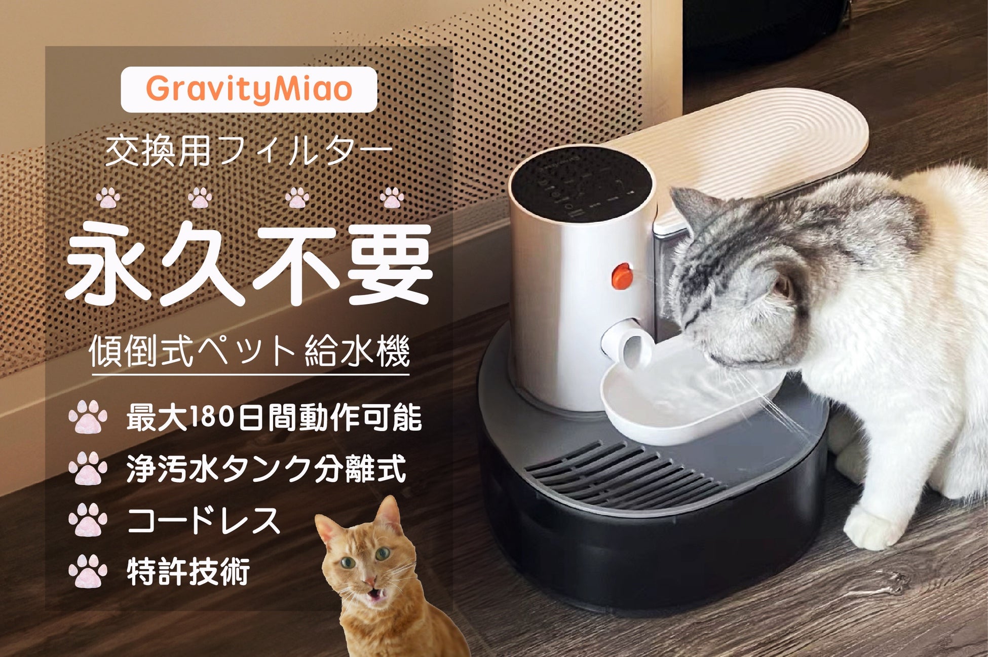 GravityMiao(グラビティーミャオ)は、小型ペット向けに設計された、フィルター不要の次世代の自動給水機。
