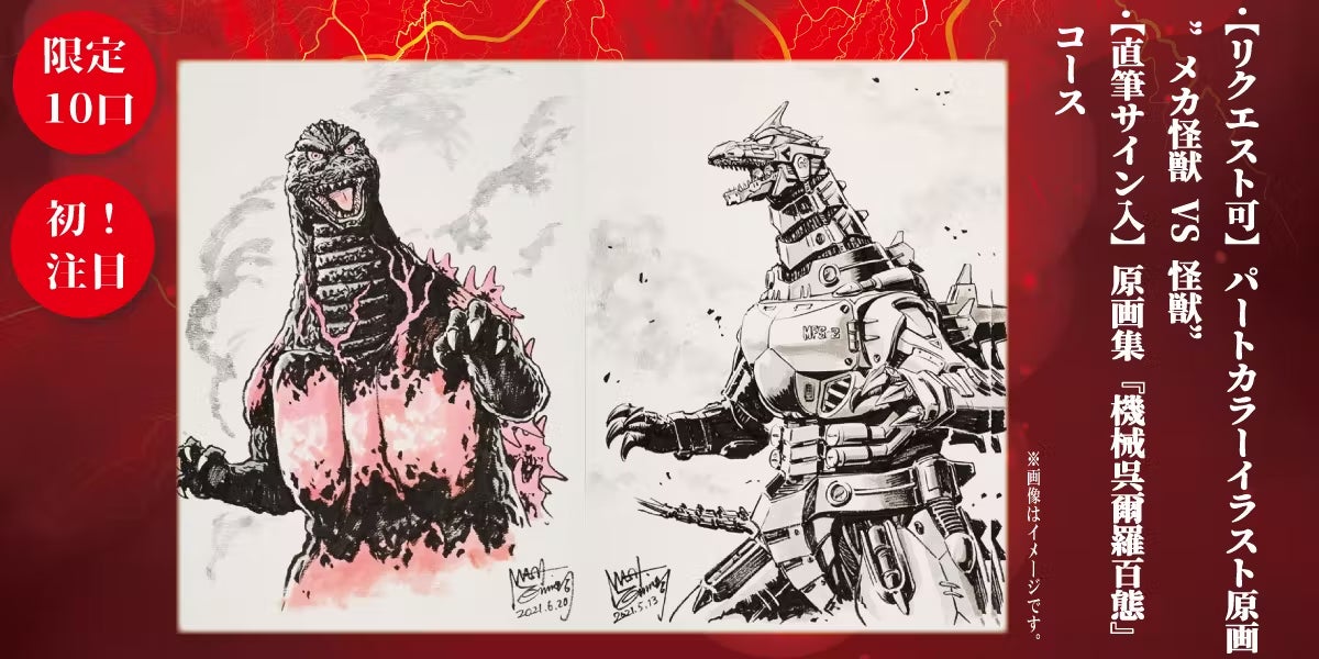 <限定限定10口>【リクエスト可】西川伸司直筆パートカラーイラスト原画”メカ怪獣 VS 怪獣” +【西川伸司直筆サイン入り】原画集『機械呉爾羅〈メカゴジラ〉百態』コース 110,000円