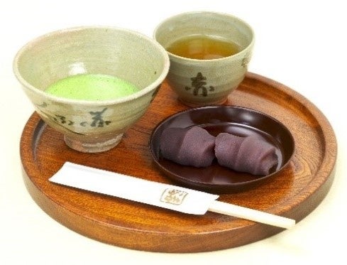 ▲赤福餅お召し上がり盆(赤福餅2個・番茶付)税込300円/(赤福餅2個・抹茶付)税込700円