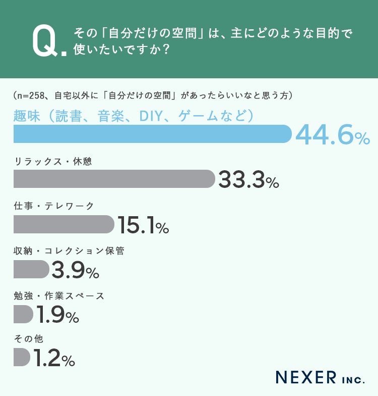 ■44.6%が「自分だけの空間」の使用目的は「趣味」と回答