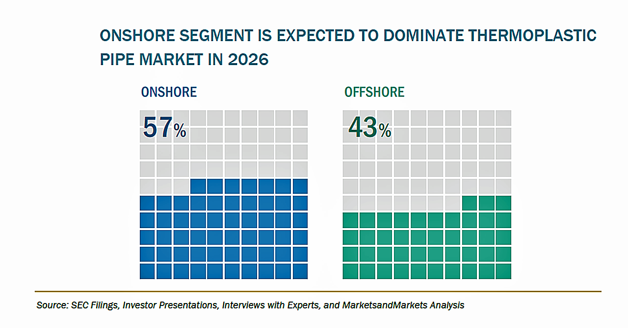 一方、強化熱可塑性プラスチックパイプは、石油・ガス産業において、中圧の鋼管を置き換えるために使用されています。国際規格の認定を受けている重要企業が、最大450バール(6527psi)の圧力容量を持つパイプを設計しており、陸上での用途に使用することができます。さらに、これらのプラスチック製のパイプは、熱硬化性の複合部品を使用しており、陸上での使用に最適です。