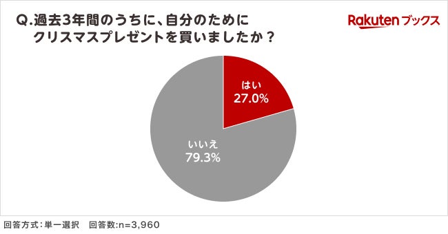 ・過去3年以内に自分にクリスマスプレゼントを買ったと回答した人は4人に1人以上