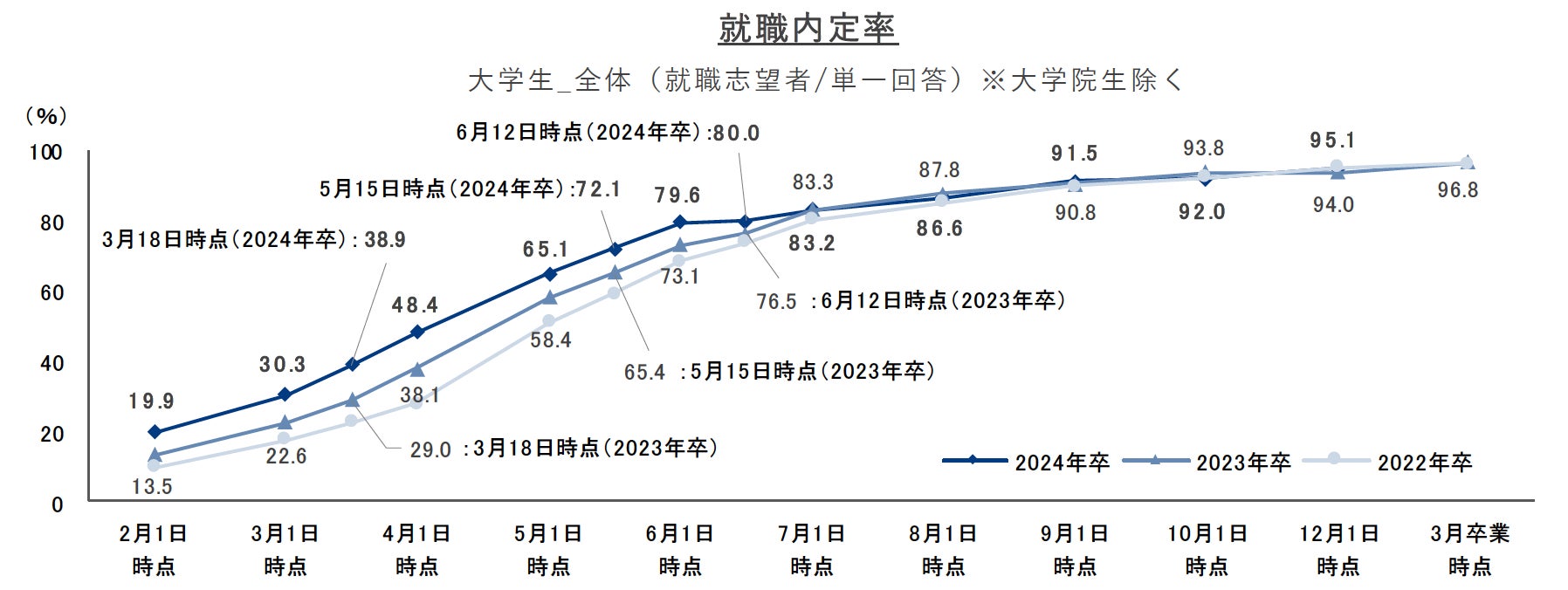 就職内定率は95.1%で、10月1日時点に比べ3.1ポイント増加。