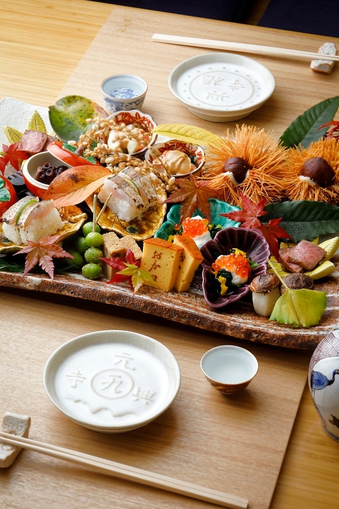 『おか田』(今御門町)の「おまかせコース」から秋の味覚を存分に味わう八寸(2名分)。