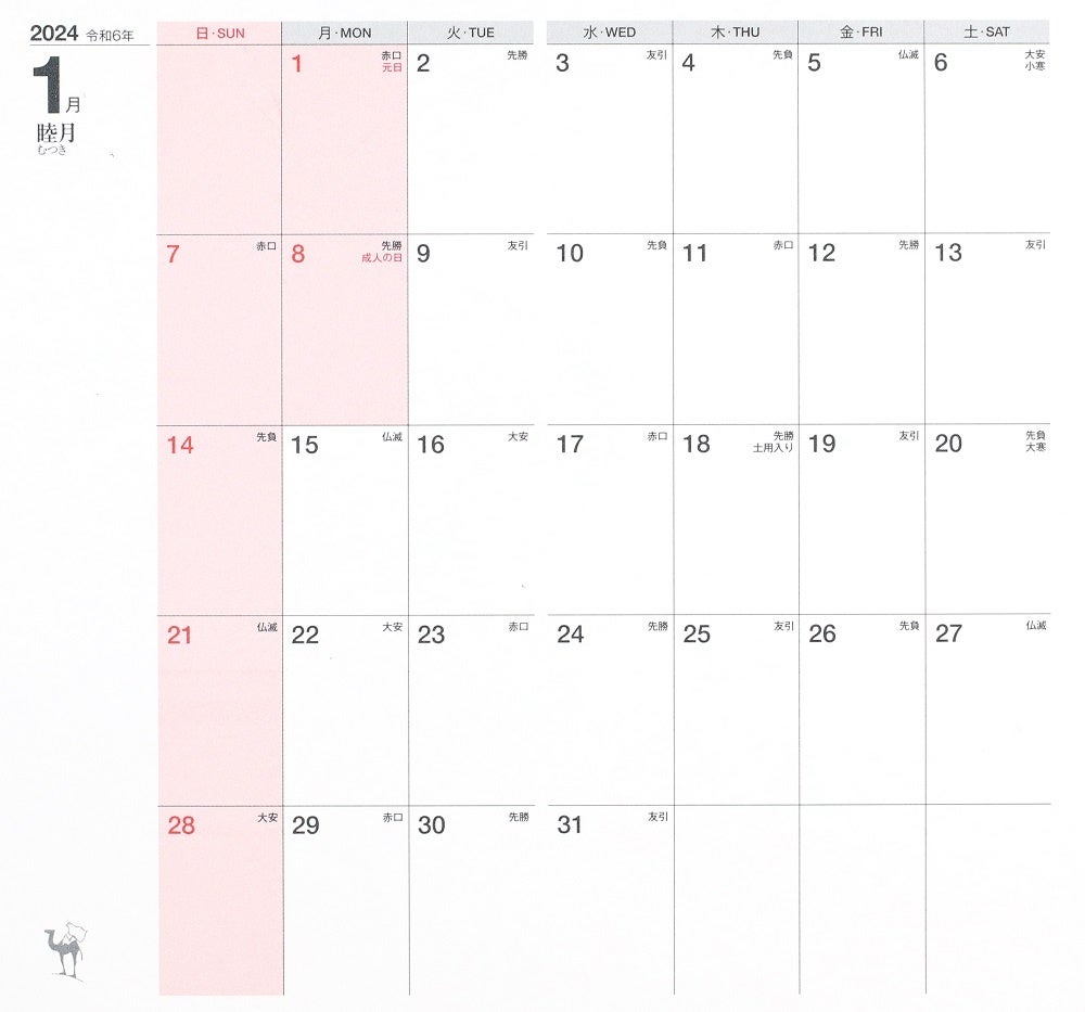 見やすい月別のカレンダーや、使い勝手の良い方眼メモも備える。