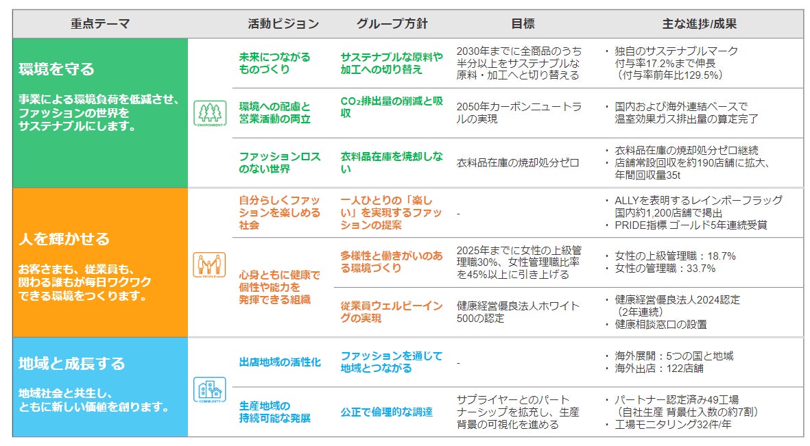 ■アダストリアのサステナビリティの重点テーマと取り組み目標