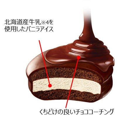 濃いチョコと北海道産牛乳使用(※4)のコク深いミルクの味わいが楽しめるチョコパイアイスです。