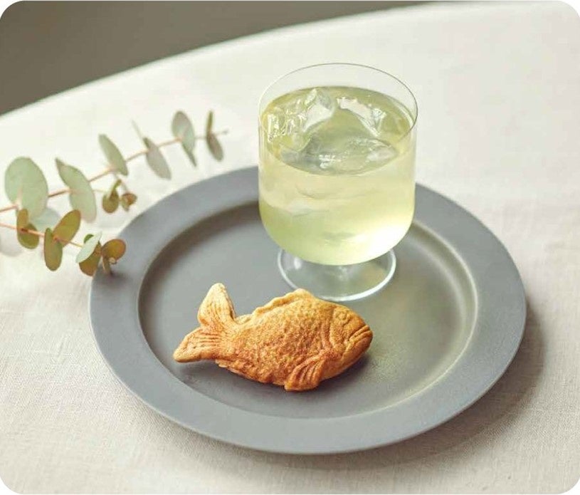 京都を代表する老舗の生麩専門店「麩嘉」の“鯛焼き麩”と「一保堂茶舗」のドリンクをセットに。もっちもちの生麩と自家製あんの上品な甘みがいくつでも食べたくなるおいしさ。