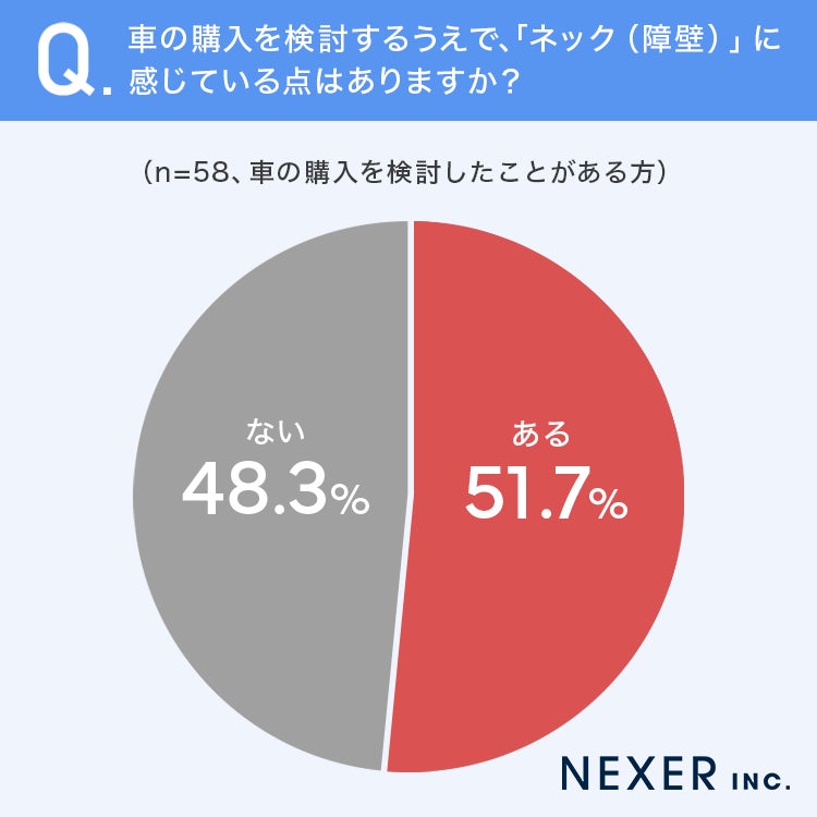 ■51.7%が、車の購入検討にあたり「ネックがある」と回答