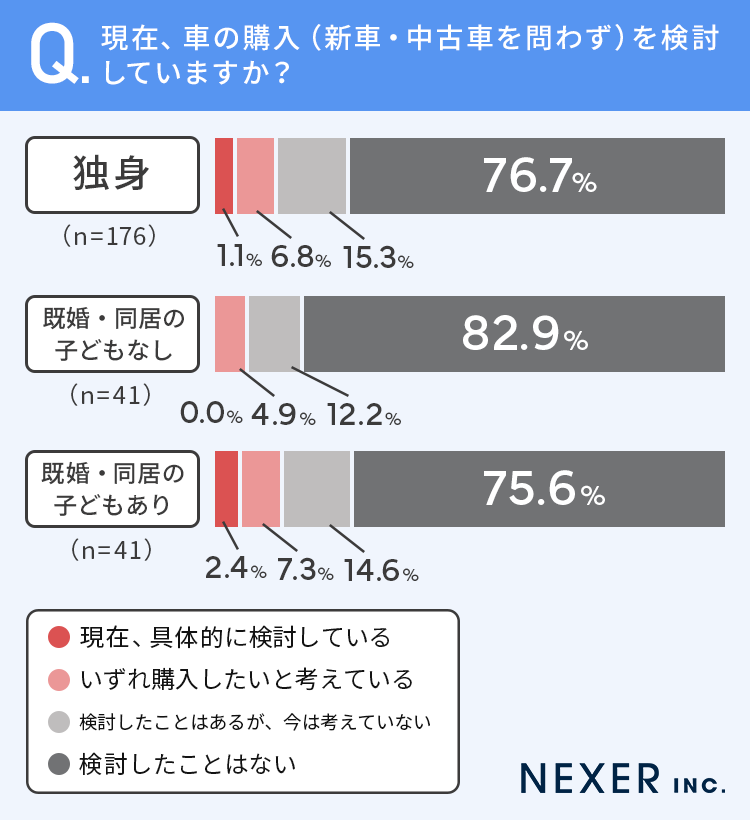 ■既婚・子どもなしの82.9%が「車の購入を検討したことはない」と回答