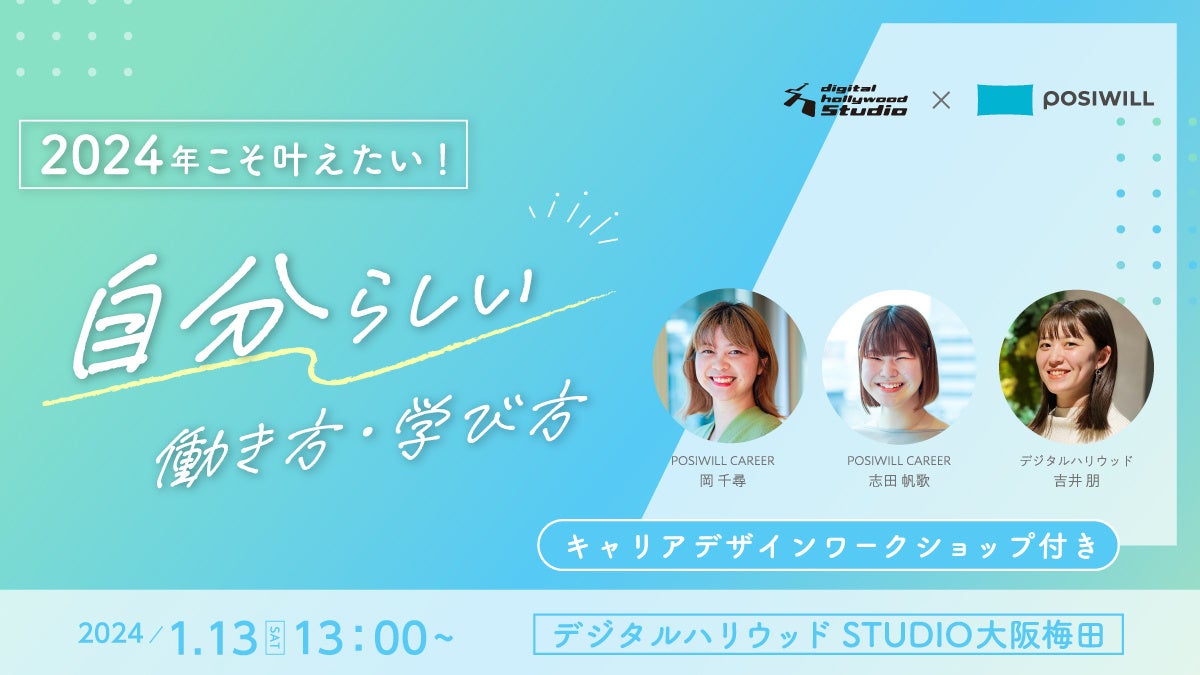 <共催イベント>デジタルハリウッドSTUDIO大阪梅田×ポジウィル|2024年こそ叶えたい!自分らしい働き方・学び方~キャリアデザインワークショップつき~