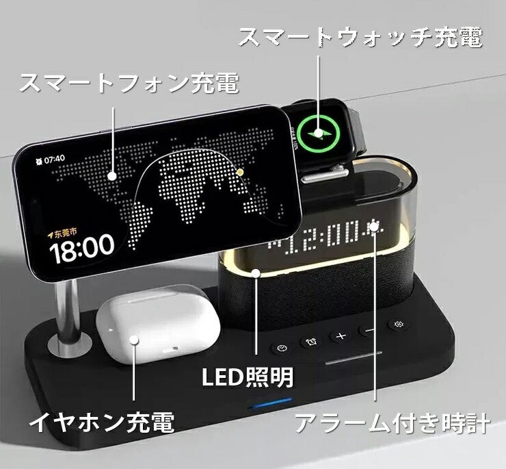 【最大15W急速充電/アラーム・デジタル時計機能/LED照明】