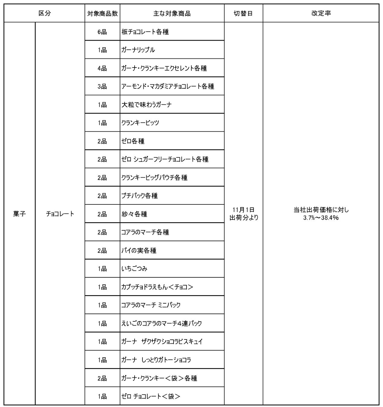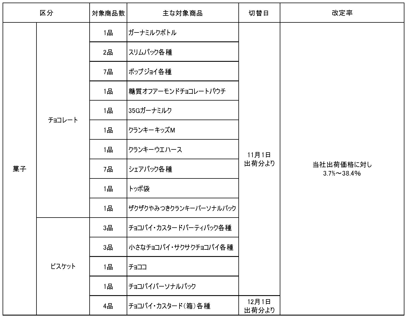 つきましては、やむを得ず下記商品について価格改定ならびに内容量変更を実施させていただきます。