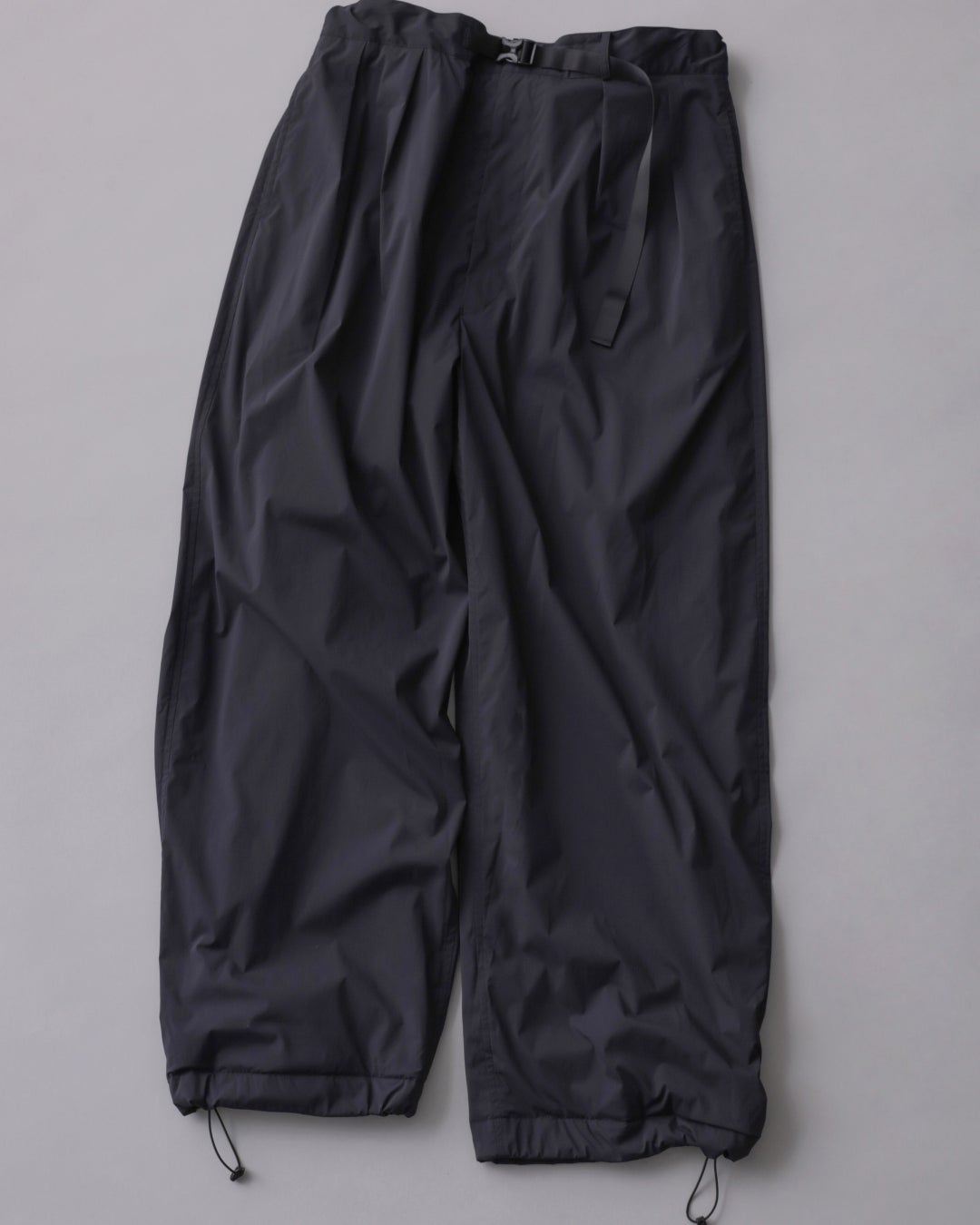 フランス軍の名作パンツであるM52をT/Eのフィルターを通して再解釈。表地にはコーデュラナイロンを使用したストレッチタフタを用いて、マットな表情とストレッチ感をもたらした。裏地のOcta®︎アクティブインサレーションによって軽量かつ高い通気性と速乾性、保温性を誇る。前見頃に深めの2タックを施し、膝にボリュームを持たせるパターンを取り入れ、着用時の快適な動きをサポート。袖口のスピンドルによって機能的なサイズ、シルエット調整が可能となっている。ウエスト部分がアジャスターバックル仕様になるなど、冬の都市生活において最適ともいえる一本に仕上げた。