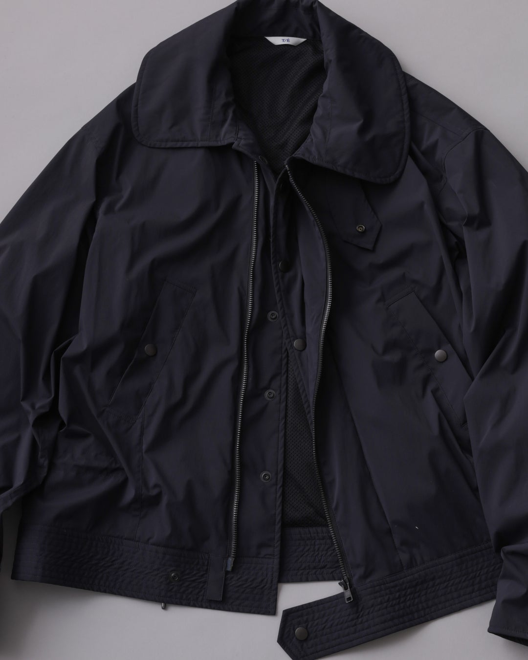 フランス軍の1960年代のパイロットジャケットを現代的にアップデート。肘部分のタックや首周りに空間が生まれる独自のパターン、ウィンドストッパーとして機能する袖口裏に内蔵したゴムなど、機能性と快適な着心地を追求したT/Éの哲学を余すところなく落とし込んでいる。表地にはマットな表情とストレッチ感が特徴のコーデュラナイロンストレッチ、裏地はOcta®︎アクティブインサレーションを使用。撥水性と防風性、高い保温性を実現。フレンチヴィンテージの名作が現代のモダンウエアに生まれ変わった。