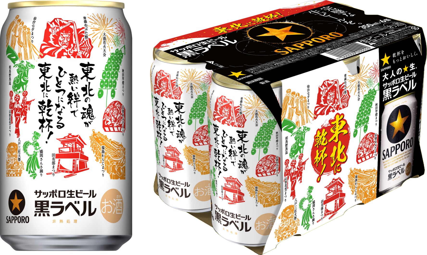 サッポロビール(株)は、東北6県の夏の名物である各地の祭りをデザインしたサッポロ生ビール黒ラベル「東北応援缶」を7月4日に東北エリア限定で発売します。