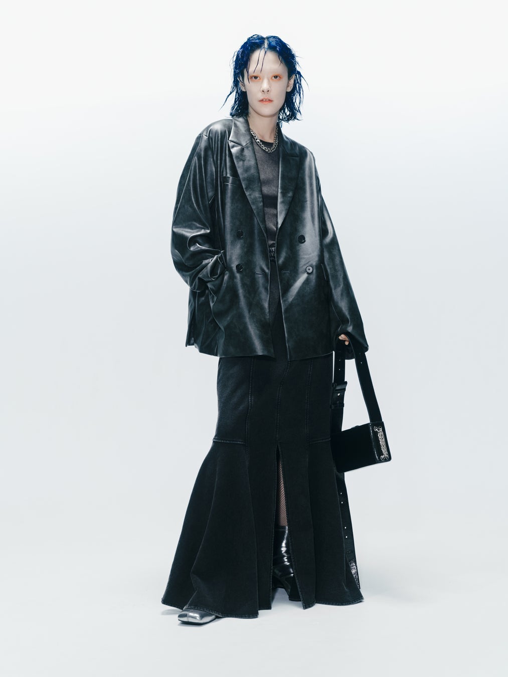 レディースのラインである「EDGY MODE」では、HAREの持つクールな印象をより強調した前衛的でエッジの効いたスタイルでコアなファンの方々を中心に大好評をいただきました。第2弾となる今回は、ギミックの効いたレザーセットアップや、トレンドのスーチングディティールを取り入れたハンサムな雰囲気のワンピースなど他にないエッジの効いたエレガントスタイルを提案します。